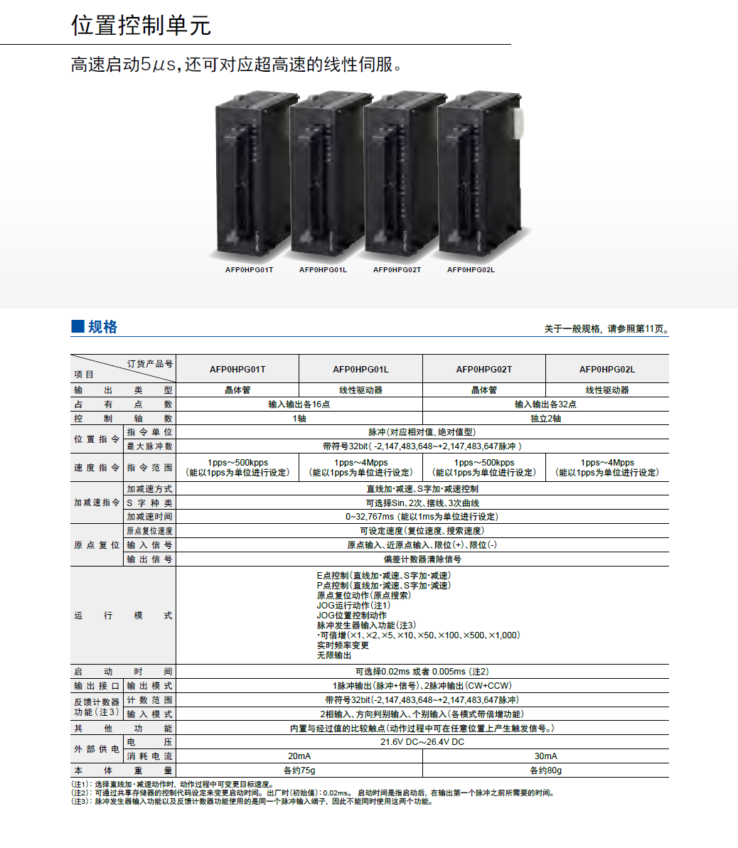 ·控制單元中內(nèi)置4軸脈沖輸出(各軸最大100kHz)